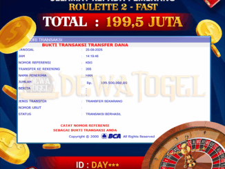 DEWATOGEL JACKPOT LIVE CASINO DI ROULETTE 2 – FAST Rp 199.500.000,- LUNAS