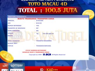 DEWATOGEL JACKPOT TOGEL DI TOTO MACAU 4D Rp 100.500.000,- LUNAS