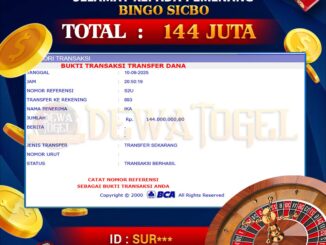 DEWATOGEL JACKPOT LIVE CASINO DI BINGO SICBO Rp 144.000.000,- LUNAS