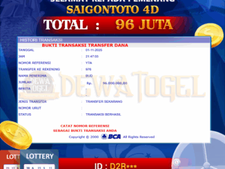 DEWATOGEL JACKPOT TOGEL DI SAIGON TOTO 4D Rp 96.000.000,- LUNAS MEMBER DEWATOGEL MENERIMA PELUNASAN KEMENANGAN JACKPOT TOGEL DI SAIGON TOTO 4D Rp 96.000.000,- LUNAS “DEWATOGEL […]