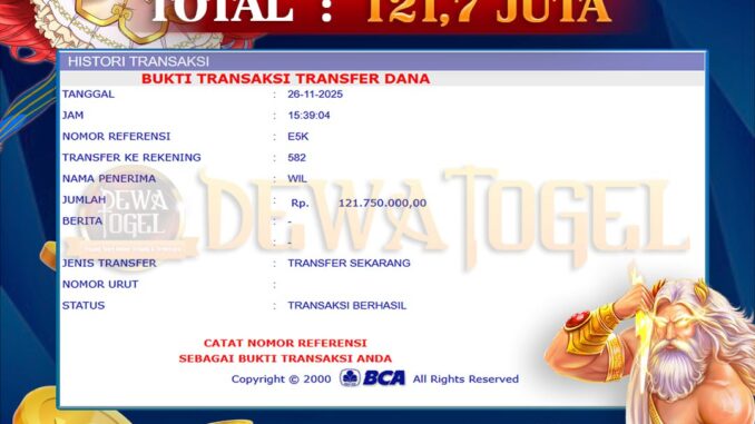 DEWATOGEL mengucapkan selamat kepada user id : K8U*** yang telah berhasil mendapatkan jackpot pada permainan SLOT DI MAHJONG WINS 2 . Kemenangan sebesar Rp 121.750.000,-. telah dibayarkan LUNAS oleh pihak dewatogel kepada pemilik user id setelah yang bersangkutan mengisi formulir withdraw. Proses pencairan dana berlangsung sangat cepat hanya dalam waktu 5-10 menit sudah berada dalam rekening pemilik user id. Bukti transfer yang dapat anda lihat adalah bukti SAH / VALID yang langsung di dapatkan melalui bukti transaksi dari Bank yang digunakan untuk pengiriman dana pada rekening pemilik user id. Terima kasih kami sampaikan kepada para pengguna setia DEWATOGEL yang telah menggunakan situs kami, sebagai Bandar Terpercaya yang pastinya membayar semua kemenangan member hingga lunas. Apakah DEWATOGEL PENIPU ? Reputasi “DEWATOGEL TERPERCAYA” sudah sangat melekat. puluhan hingga ratusan ribu pengguna setia DEWATOGEL tetap menggunakan situs terbesar dan terbaik di Indonesia ini. Hapus rasa was-was dan khawatir anda, kemenangan anda berapapun PASTI dibayarkan hingga lunas.
